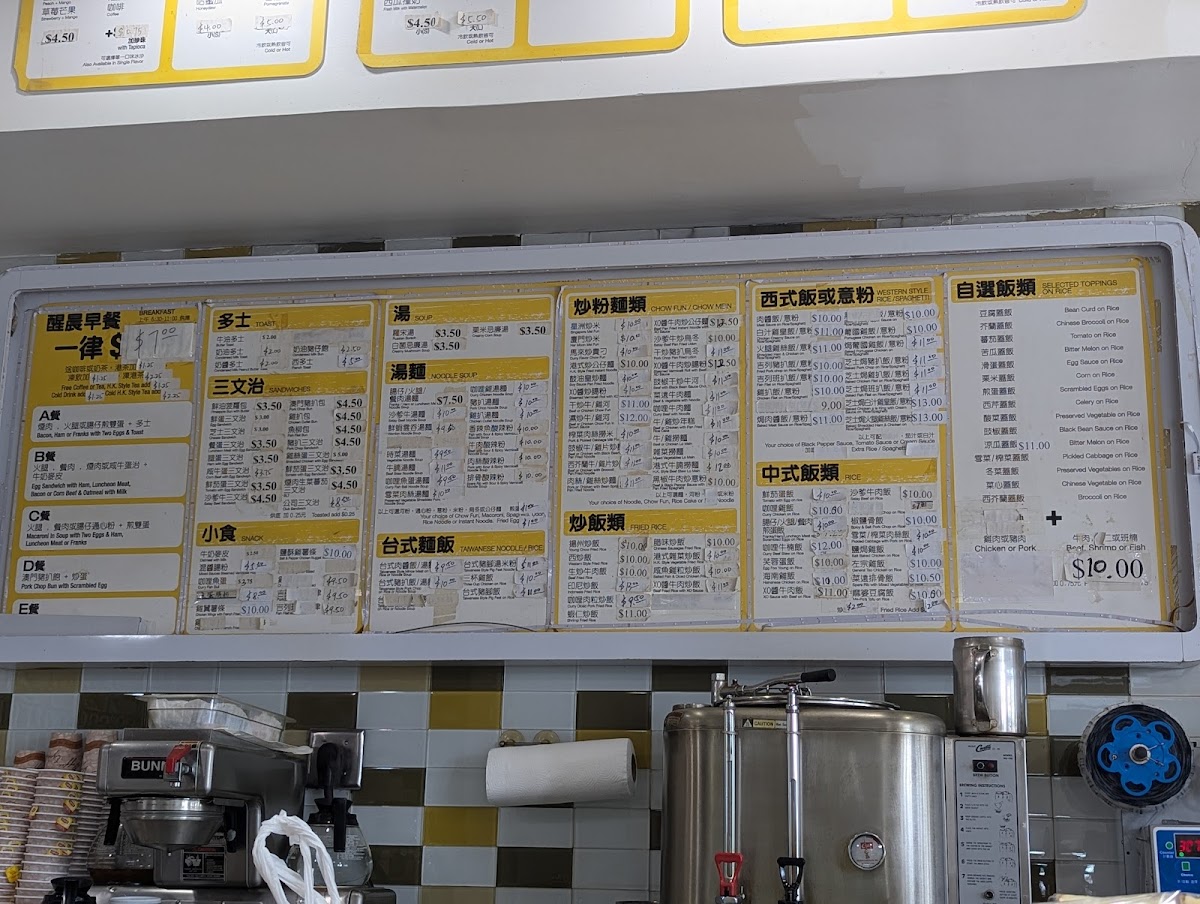This menu is designed to accommodate quick service and takeout, with a focus on familiar Hong Kong and Chinese flavors available throughout the day. The range of dishes supports both light meals and more substantial dining experiences.